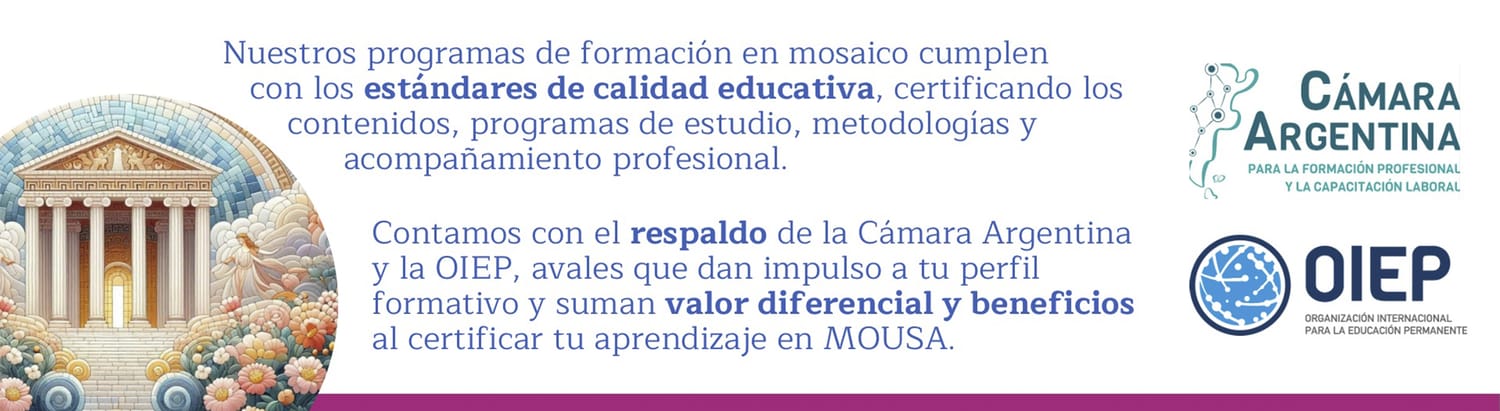 Somos una institución avalada por la Cámara Argentina para la Formación Profesional y la Capacitación Laboral, organismo que nuclea y regula a los principales centros de formación del país, certificando que nuestros programas responden a criterios de excelencia, actualización permanente, coherencia pedagógica y orientación al desarrollo laboral y emprendedor.